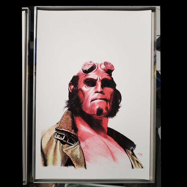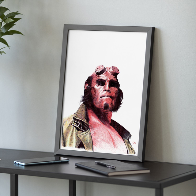 Reproduction de l'illustration originale "Hellboy" inspirée du film "Hellboy". L’illustration originale a été réalisée sur un papier A5 intégralement au stylo Bic, sans crayon, ni gomme. Sa création a nécessité 80h de dessin. Impression laser sur papier blanc lisse format A3 (29,7 x 42cm), 160g. L'impression est vendue sans cadre.