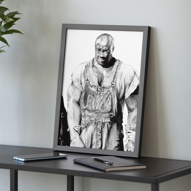 Reproduction de l'illustration originale "John Coffey" inspirée du film "La ligne verte" réalisé par Frank Darabont (1999). L’illustration originale a été réalisée sur un papier A5 intégralement au stylo Bic, sans crayon, ni gomme. Sa création a nécessité 45h de dessin. Impression laser sur papier blanc lisse format A3, 160g. L'impression est vendue sans cadre.eproduction de l'illustration originale "Jack Sparrow" inspirée de la saga des films « Pirates des Caraïbes » créée par Gore Verbinski (2003). L’illustration originale a été réalisé sur un papier A3+ (48x33cm) intégralement au stylo Bic, sans crayon, ni gomme. Sa création a nécessité 117h de dessin (le plus long au jour d’aujourd’hui). Impression laser sur papier blanc lisse format A3 (29,7 x 42cm), 160g. L'impression est vendue sans cadre. Disponible en édition limitée à 25 exemplaires en tirage d’art accompagné d’un certificat d’authenticité.