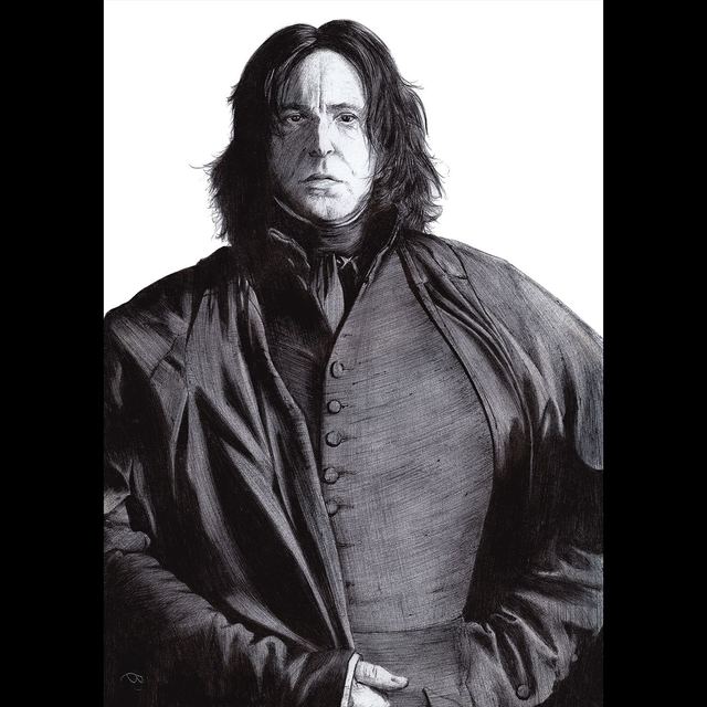 Reproduction de l'illustration originale "Severus Rogue" inspirée de la saga des films "Harry Potter" adaptée des 7 romans éponymes de la romancière J.K. Rowling (2001). L’illustration originale a été réalisée sur un papier A5 intégralement au stylo Bic, sans crayon, ni gomme. Sa création a nécessité 60h de dessin. Impression laser sur papier blanc lisse format A3 (29,7 x 42cm), 160g. L'impression est vendue sans cadre.