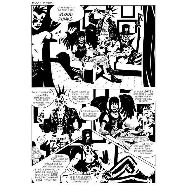 Telle est la devise des Blood Punks, cette meute d’hémonocts (hémophages-noctambules, sorte de vampires modernes) anarchistes et turbulents, qui narguent la Caste, les Rebelles, les Templiers et tous ceux qui cherchent à leur imposer leur doctrine.